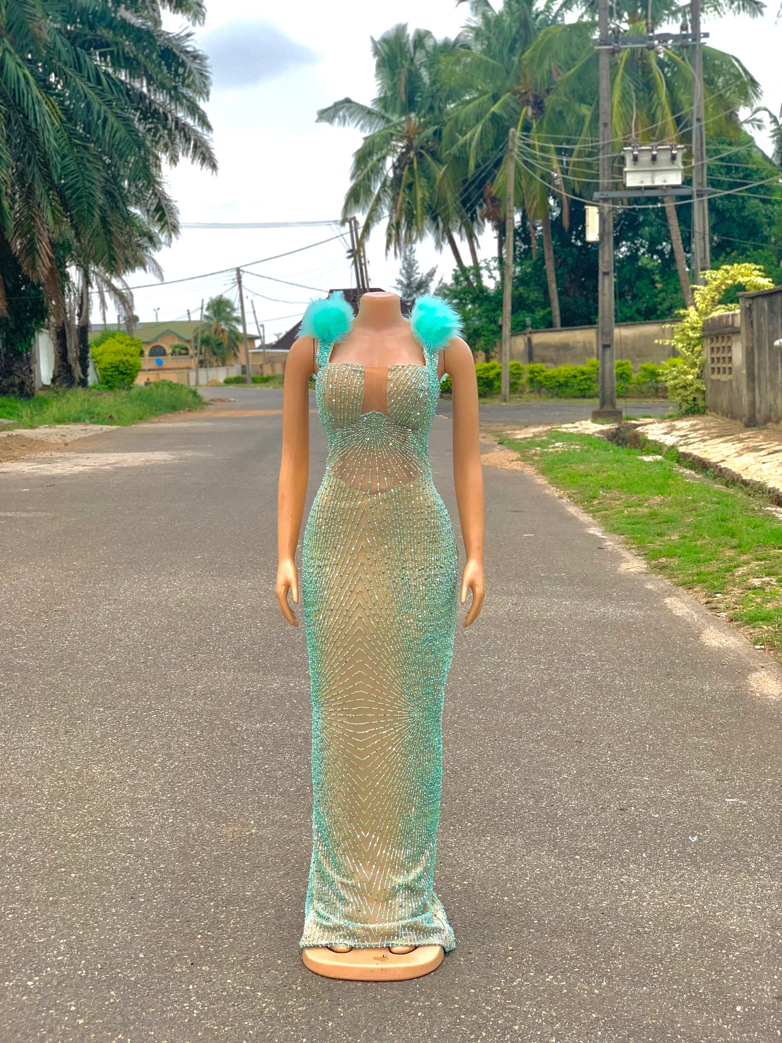 Teal blue wedding dress , Mermaid dress , party dress , deep v prom dress, rhinestone prom dress