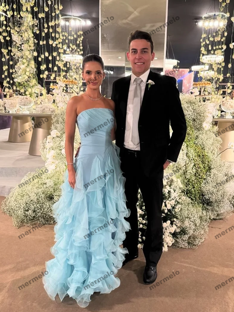 Tulle Ruffles Formal Prom Party Dresses A-line Backless Court Evening Prom Gown