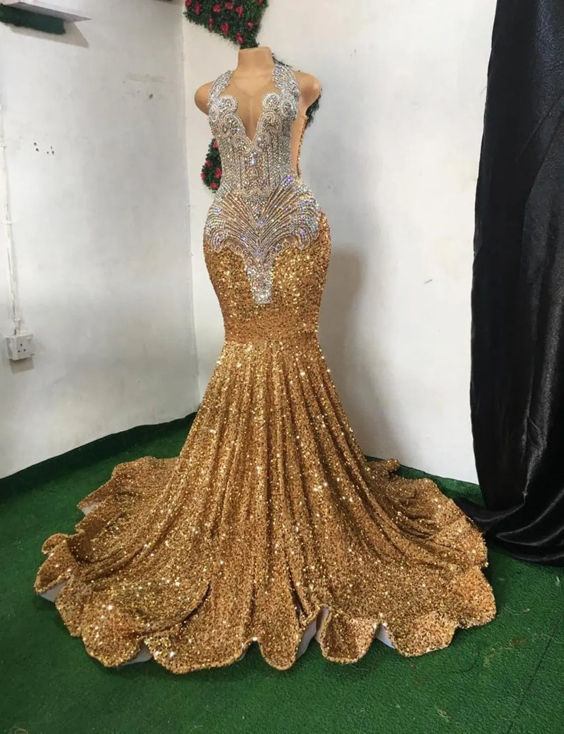 Unique Gold sequin dress, silver applique,Sleeveless Mermaid Dress,Prom Dress,Reception Dress,African Women Dress,Free Shipping