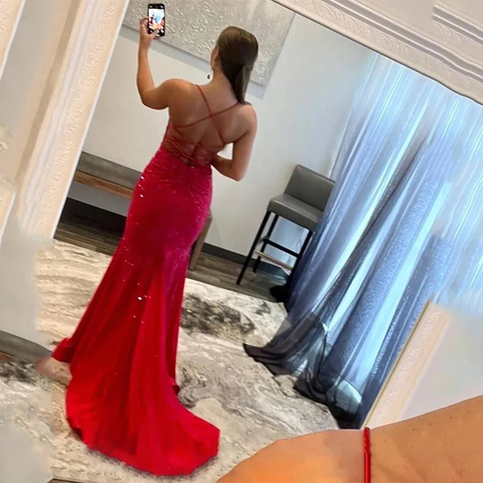 Sequin Fine Shoulder Strap Prom Dresses Shiny Sweetheart 2026 Women's Party Evening Gowns Sexy Backless Cocktail Dresses